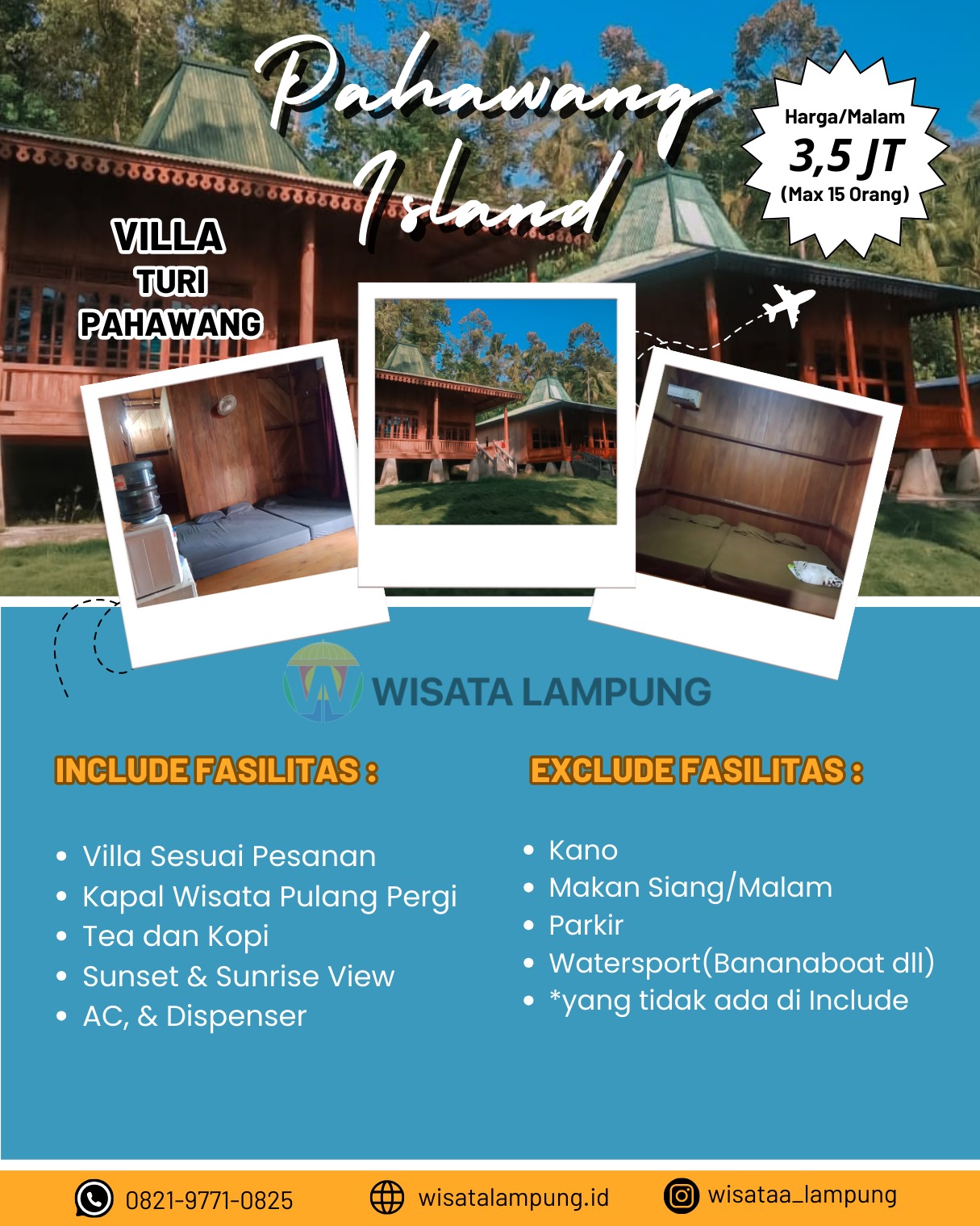 Penginapan Villa Turi terletak di Pulau Pahawang, salah satu pulau cantik di Provinsi Lampung yang terkenal karena keindahan alam bawah lautnya yang memukau. Dikelilingi oleh hamparan laut yang jernih dan pasir putih yang lembut, villa ini menawarkan pengalaman menginap yang tak terlupakan bagi para wisatawan yang mencari ketenangan dan keindahan alam yang masih alami.