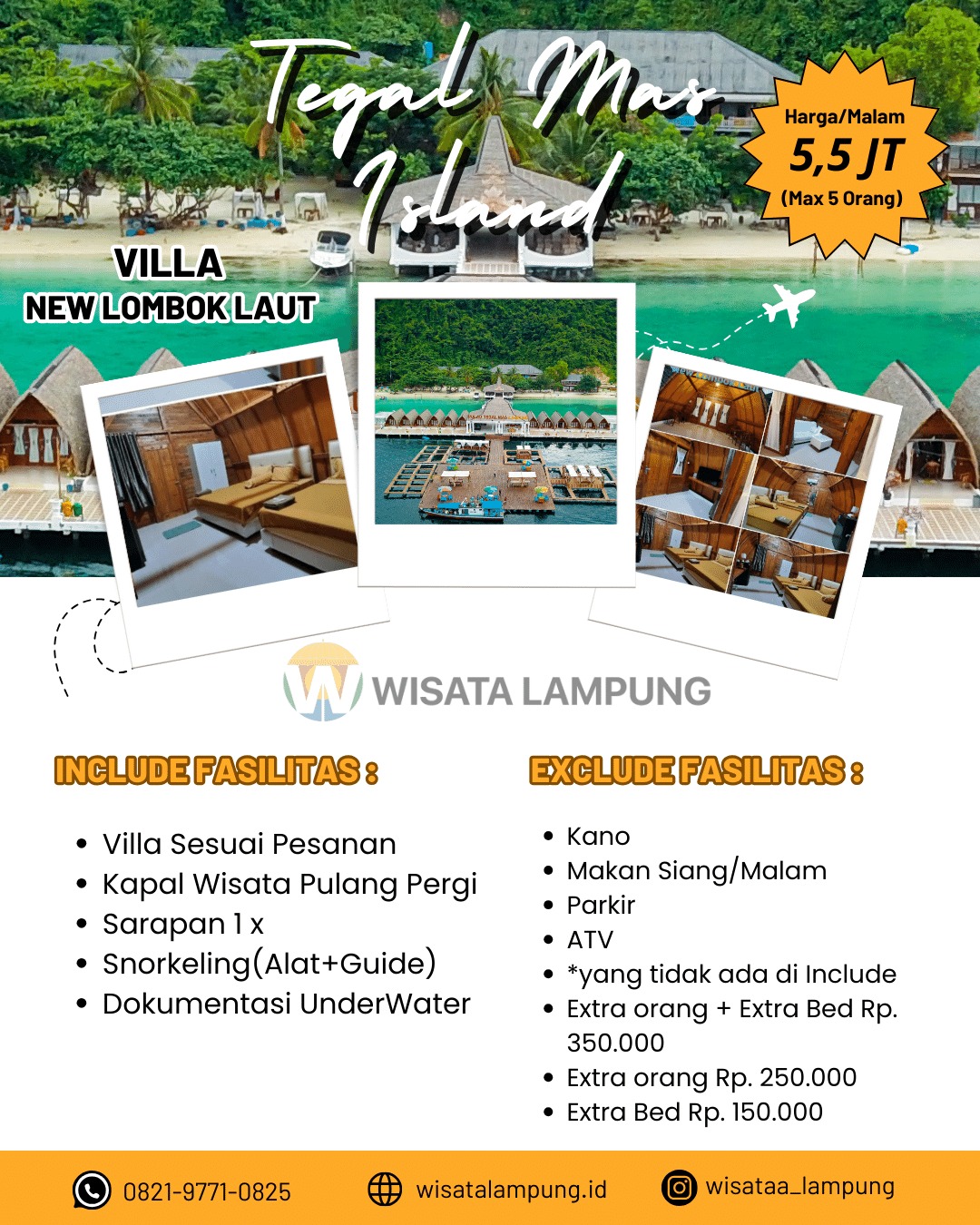 Selamat datang di surga tersembunyi di Pulau Tegal Mas! Villa New Lombok Laut Pulau Tegal Mas mengundang Anda untuk merasakan pesonanya yang tak terlupakan. Dengan pemandangan laut yang memukau dan fasilitas mewah, kami menyajikan pengalaman menginap yang menggoda. Lepaskan segala kepenatan dan nikmati ketenangan di tepi pantai kami yang eksklusif. Dengan sentuhan profesionalisme dan keramahan, staf kami siap memanjakan Anda sepanjang waktu. Jelajahi keindahan alam sekitar, nikmati kelezatan kuliner lokal, dan ciptakan kenangan abadi di Villa New Lombok Laut Pulau Tegal Mas. Sambutlah liburan Anda dengan kemewahan dan kenyamanan yang tak tertandingi di sini. Jelajahi keindahan alam sekitar, nikmati hamparan pasir putih, dan jadikan momen ini sebagai pelarian dari hiruk-pikuk kehidupan sehari-hari. Temukan ketenangan dan kebebasan di Villa New Lombok Laut Pulau Tegal Mas, tempat di mana impian liburan Anda menjadi nyata.